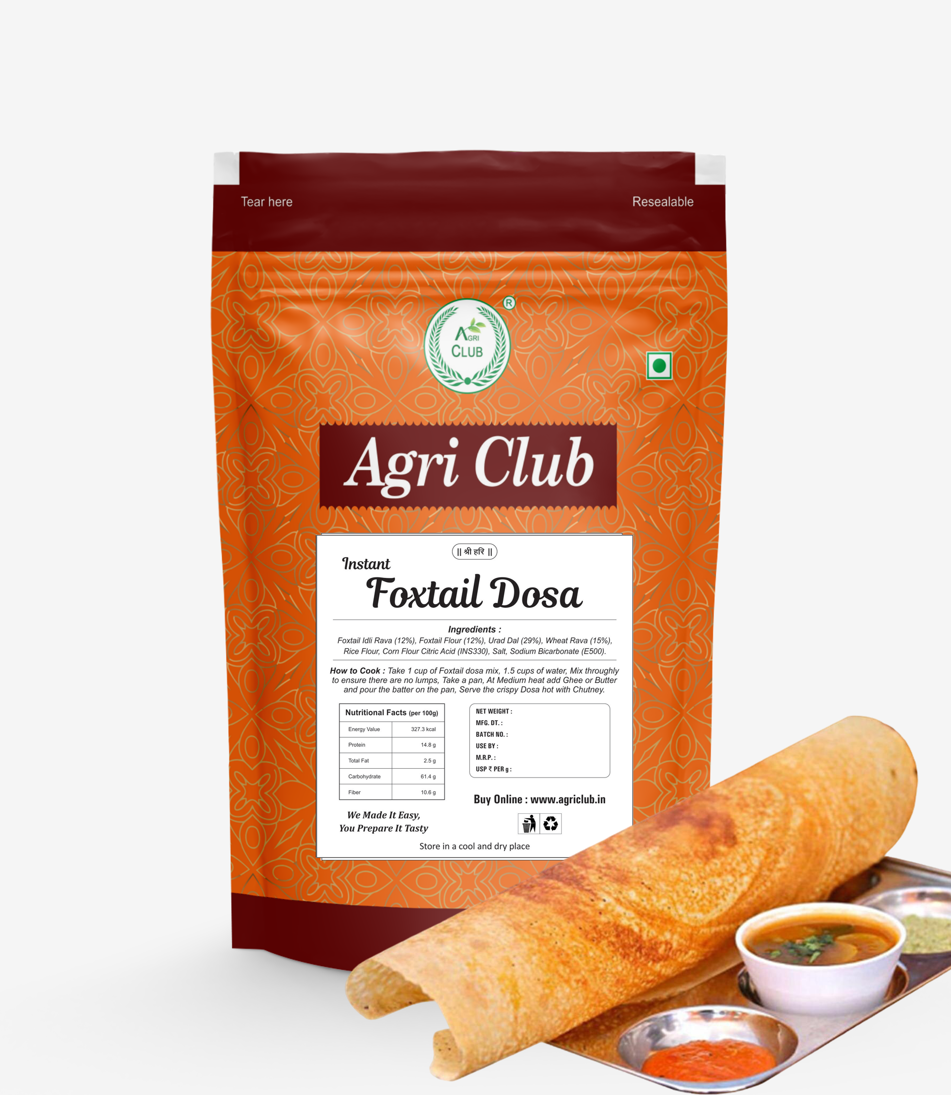 In StockIn StockOut of stockInstant Foxtail Dosa Mix Premium Quality 500 GM 100% Vegan. Gluten Free & Rich in Dietary Fibre. Ideal meal option at any time of the day.